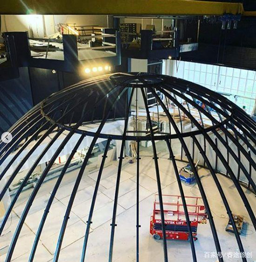 用餐区的圆顶直径为 18 米,并且采用了钢材料来做框架,非常稳固。除了惊人的圆顶设计,餐厅内处处都是细节。例如不规则的餐吧台上,能看到黄铜细灯,提供了集中的光线,让食物看上去更加可口。