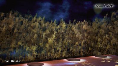 Teamlab创造了一个不断变化的环境,反映日本不断变化的季节。因此,投影也受用餐者的行为影响。如果你保持不动,一只小鸟可能会落在你手上。你突然移动,它会被吓得飞走。