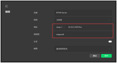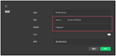 3.在弹出的页面中填写RTMP推流地址和流密钥,点击保存。