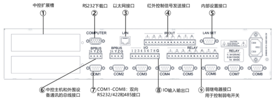 6,BPBUS 接⼝:是⽤于接中控主机外围设备的专⽤总线接⼝,如继电器,调光器等各种外接设备。