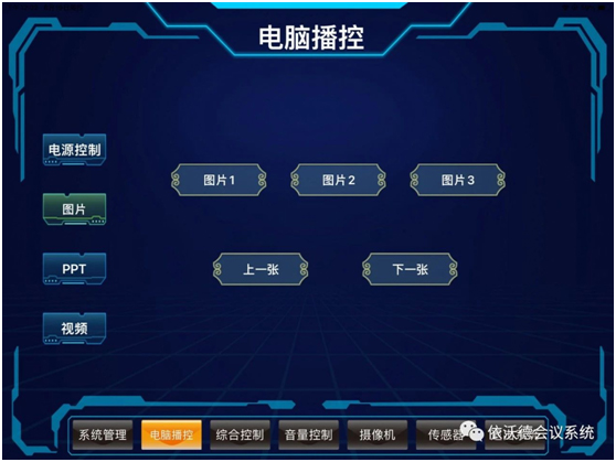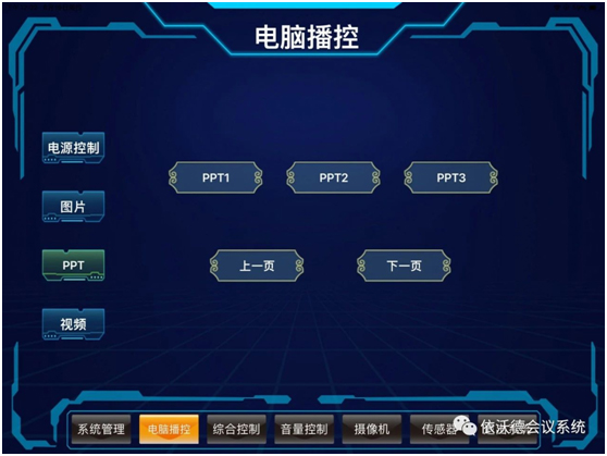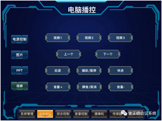 •然后再控制显⽰屏的电源、电脑的开关机和灯光⾳响的电源开关等等这些就⾜够了。