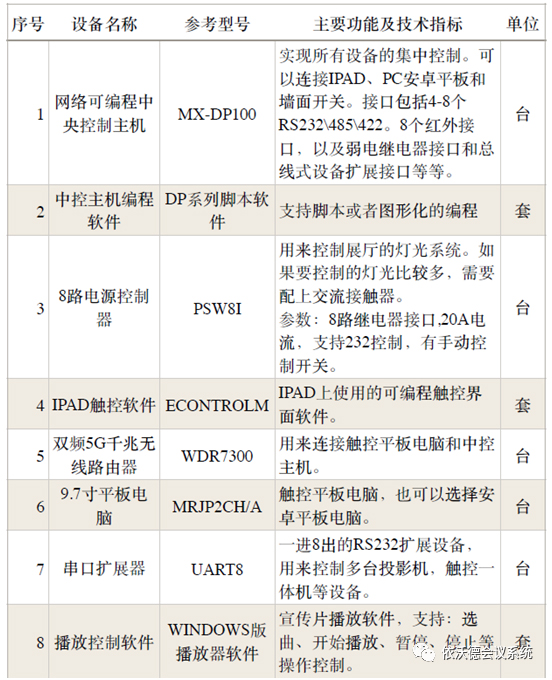 •展厅设备的特点是:每⼀个显⽰设备,⽐如LED,LCD和投影机显⽰的内容⼤致是固定的。就是需要控制宣传⽚或者⽚源的播放以及电脑的开关机。