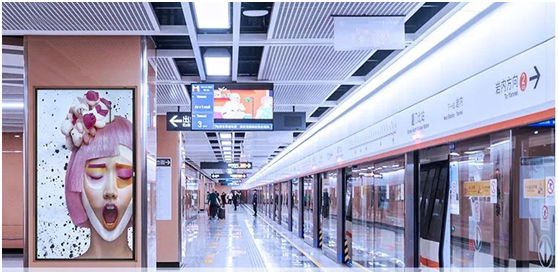 实际应用于地铁轨交场景下,数字标牌一方面可应用于地铁站台口,在与地铁PIS系统对接后,能提供全程站点、到站信息动态显示,实现精准站台播报,直观展示轨交线路走向及换乘信息,便于出行乘客及时掌握地铁站点信息。