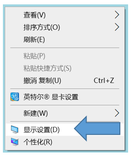 ·    然后,您可以在电脑桌面空白处单击右键,选择“显示设置”选项。