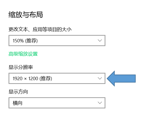 ·     最后在“缩放与布局”列表下找到“显示分辨率”选项。从下拉菜单中选择与投影机分辨率相匹配的输出分辨率即可。