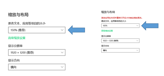 我们仍然以Windows 10笔记本电脑为例,同样在“缩放与布局”列表下,可以看到“更改文本、应用等项目的大小”选项。您可以尝试将比例调整至100%。