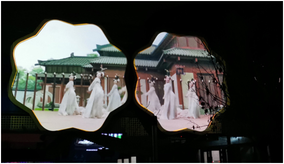 西宁万达广场户外光影亮化——2台Venus系列高亮投影机,配合融合服务器及同品牌融合软件和中控系统,打造梅花造型图案,与中国传统戏剧的内容相融合,彰显国潮复兴的魅力。