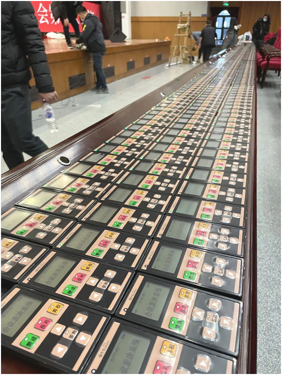 为了会议的顺利进行,HUAIN华音工作人员在会前进行了详尽的设备调试。工作人员认真检查近300席手持无线表决单元HY-V100D系列,确保其性能正常、运行稳定。在会议期间,HUAIN华音工作人员在现场进行全程保障,时刻注意设备运行的稳定性,使得投票表决工作得以顺利进行。