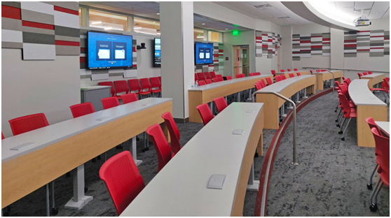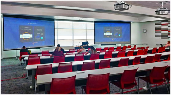 为了让校内占地 163,000 平方英尺的科学、工程和技术 (SET) 大楼具备最新视音频技术的能力,校方的高级视听管理员 Shaun Hayes 请盐湖城专业 AV 集成商 Marshall Industries 协助其进行系统设计和安装。Extron 为本项目的 35 间教室、实验室、报告厅及会议室提供了 AV 切换、分配、控制及音频放大设备。除此之外,学校 AV 技术团队也积极推进校园 AV 系统标准化进程,对 31 座教学楼的 175 个房间的各类 AV 系统及其不够稳定的硬件设备进行了全方位改造升级,旨在统一创建基于 Extron 技术的可靠且支持远程管理的标准化系统。