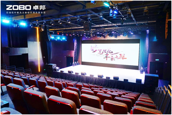 台唇选用ZOBO卓邦旗下PRS品牌TW系列TW8全频扬声器,给前排观众补充声音;观众区两边墙上设置了补声音箱,提高观众区域声场的均匀度;