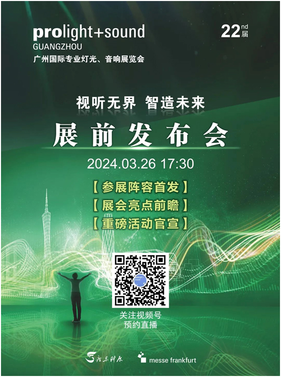 在展会进入最后筹备阶段,主办单位将于3月26日举办“视听无界 智造未来——广州国际专业灯光、音响展览会展前发布会”,重磅发布2024年展会的最新参展阵容及展会亮点。