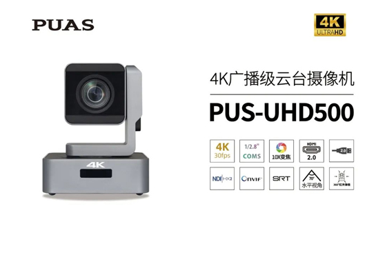 PUS-UHD500是一款迷你小巧的云台摄像机,全金属机身,坚固耐用。10倍光学变焦,可输出4K@30fps超高清画面,支持 USB2.0 / HDMI / IP Streaming 三路视频信号同时输出;具有低带宽传输需求的 H.264 / H.265 超级解码;内置音频接口,适用于实时流媒体和录制。