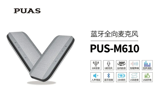 PUS-M610是普奥视自助设计生产的企业级全向蓝牙麦克风,内置6个阵列麦克风和45mm大功率全频扬声器,拾音半径可达6米,60㎡以内空间皆可使用。