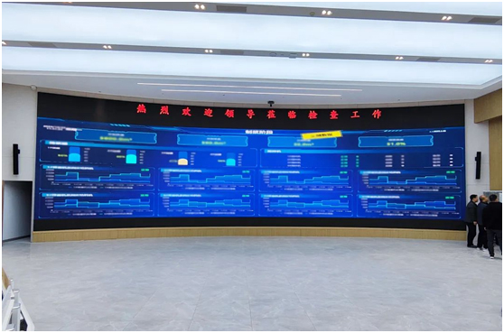 此外联建光电在神渭管运蒲城生产中心安装了五块LED大屏。其中一楼集控中心的近200㎡巨幕尤为引人注目。这块大屏不仅尺寸庞大,而且功能强大,能够实时展示运输状态、流量、压力等关键数据,为工作人员提供全面、准确的决策支持。