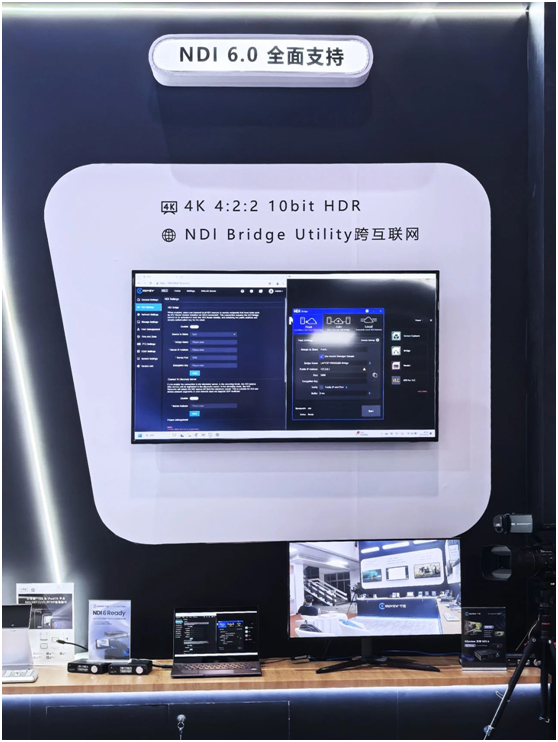 作为全球首批支持NDI 6.0的设备,N60展现了非凡实力。您可现场亲身体验4K HDR 10bit+画质带来的前所未有的视觉盛宴,其超凡的色彩深度和广度更是完美契合专业广电的需求。而NDI 6.0中NDI Bridge Utility功能,可轻松实现跨互联网传输;仅凭一个公开IP地址,即可将NDI演播室延伸至全球任何角落,让创意无界。