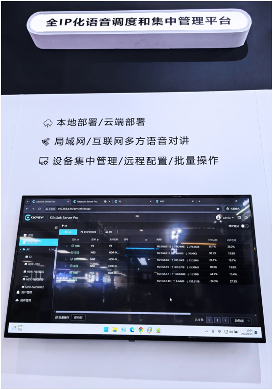 千视不仅带来了多款创新产品与解决方案,还充分展示其强大的后台管理平台——KiloLink Server Pro。在现场,您可以WEB端查看KiloLink Server Pro后台的高效管理,还能亲自上手进行远程配置和批量操作。这款完全免费的后台管理软件,不仅支持无上限设备管理、状态监测与一键推流,还集成了语音通话/指挥系统功能。无论是设备管理还是流程优化,KiloLink Server Pro都能让复杂的工作变得简单高效,助力用户以最低成本实现流媒体管理的全面升级。