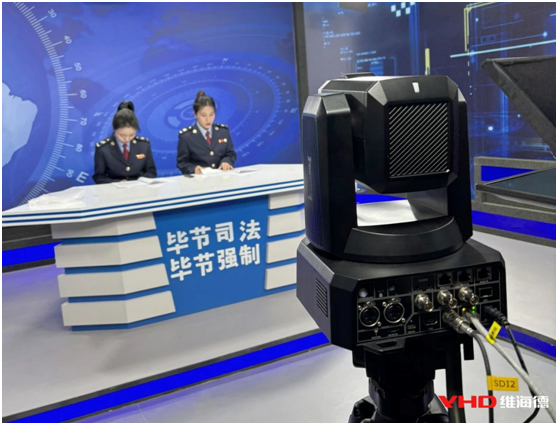 在这场高质量的直播活动中,维海德的新一代广播级PTZ摄像机GB-VX90凭借突出实力承担特写拍摄任务。由于直播间是毕节市司法局最新启用的场所,现场灯光环境较为复杂,在短时间内,未经调试的普通摄像机难以拍摄出高质量的画面。