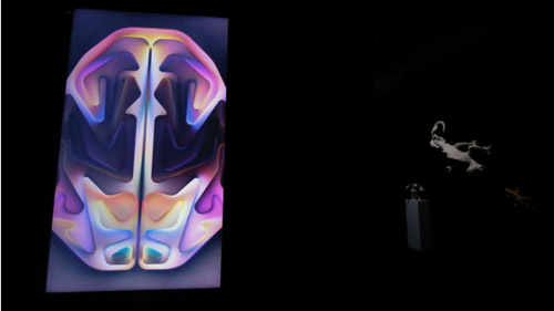 作品只留有纯粹的黑色与白色。强烈的黑白对比,依靠的是松下PT-FEQ120CL工程投影机25,000:1的超高对比度和12,400流明(中心亮度)亮度,白色高亮,黑色深邃,展现出不凡的控光能力。