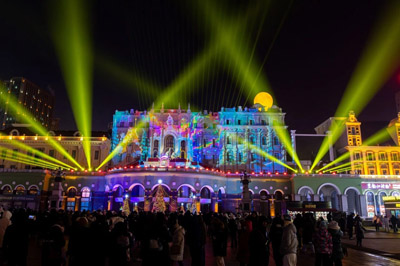 索菲亚广场建筑光影秀以其独特的造型和与外立面高度结合的创意光影设计吸引着五湖四海的游客。