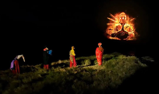 7 台激光投影机将 56 米瀑布崖壁佛像全点亮