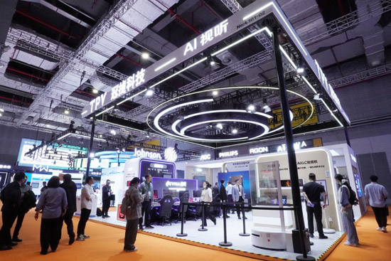 智慧医疗展区呈现AI中医健康评估系统,融合传统中医智慧与现代科技,用户通过手持检测设备与交互操作,可在飞利浦商显终端上查看健康评估参考,展现科技在健康管理领域的辅助价值。