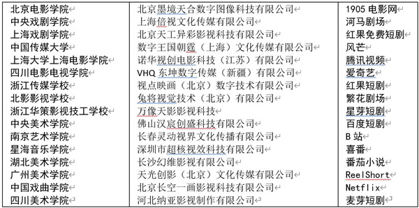 电影学院、影视学院/影视特效/网剧、短剧拍摄/播放平台