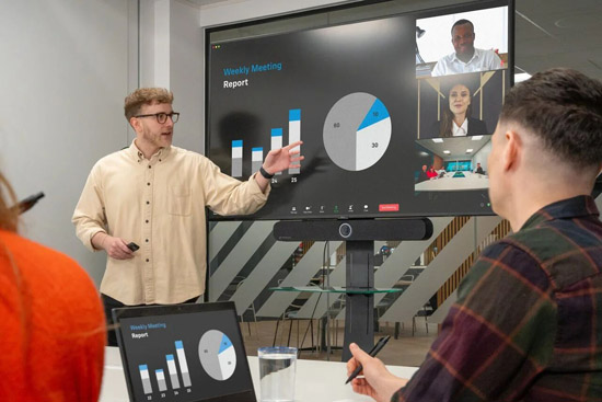 TC Bars搭载的4K AI增强摄像头在最新固件中得到优化,画面移动更自然,人物平铺与自动取景功能更逼真,带来更具参与感的会议体验。用户反馈,新的默认模式让摄像头在会议中表现更稳定,同时支持用户在通话中远程临时调整摄像头设置。