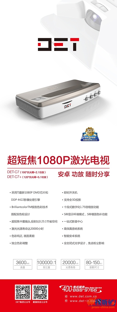 作为今年参展商之一的DET德浩集团,携带了家庭影院解决方案,以及最新的激光产品DET科教激光一体机、高亮激光工程投影机等亮相高峰论坛。