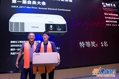 两家理事单位——深圳市科迈信息技术有限公司、深圳市巨火信息技术有限公司为大会提供了特等奖成本15000元的爱普生工程投影机1台和幸运奖品10件,两个抽奖环节,为现场带来了阵阵欢笑。