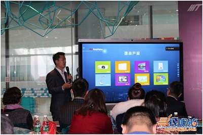 鸿合科技商显事业部总经理张冯涛品鉴会现场产品分享