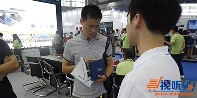 在广州国际灯光音响展与4K电视技术展的第二天,人们发现一个有意思的现象:很多观众对DANACOID展位分布式主题墙上的小蓝盒感兴趣,拿在手上总要端详半天,仔细地听工作人员地讲解。