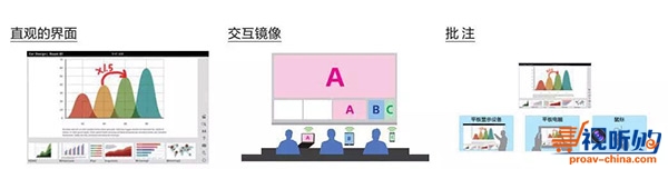 Vision Exchange互动协作系统灵活、性价比高、简单操作,是学校教学的理想之选,能满足各种教学需求。首先,其主机单元和学习组PC的所有用户操作可以使用web浏览器、触摸屏鼠标/键盘进行控制。其次,各种设备的BYOD内容都可以使用无线网络发送到Vision Exchange主机和学习组PC上,让分享变得简单方便。再次,PEQA-C30主机单元支持记录、课堂拍照和现场发布用途的流媒体输出,系统主画面上的图像可以能随时保存查看并下载到连接的个人设备或插入到Vision Exchange主机或学习组PC的USB存储器中,将整个课堂内容带回家。这样可以促进学生主动学习,让课堂变得生动有趣;助力互动课堂,创新课堂新模式;实现同步课堂,为用户打造更好的协作和沟通方式。