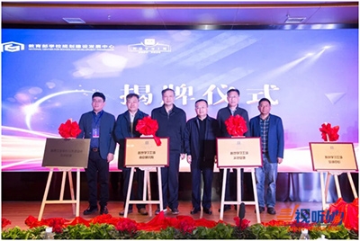 会间教育部学校规划建设发展中心首席专家孟庆国、教育部学校规划建设发展中心创新发展处处长刘志敏、浦口经济开发区管委会主任童金洲、东联南京科技园有限公司执行总裁山红、智慧学习工场(南京)研究院院长刘宁海、深圳创维-RGB电子有限公司执行副总裁谢思泉等参加活动及揭牌仪式。