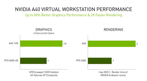 NVIDIA A40对最新vGPU软件的支持使复杂的图形工作负载可以在虚拟环境中运行,且性能可与裸机媲美。