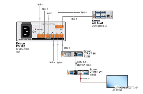 Extron全新推出的PS 125是一款1U高、1/4机架宽的多路输出12VDC、60W机架安装式电源。它通过8个两针螺丝锁定器可提供高达5A的总电流输出,并且单个电源就可为多达8台设备提供电源整合以及集中式电源管理。由于各个端口没有电流限制,每台连接的设备均可获得满足其负载需求的功率。位于前后面板的电源和过载LED状态指示灯可用于故障诊断。这款高性能的Everlast™电源由Extron自主研发制造,具有高可靠和低能耗等特性。