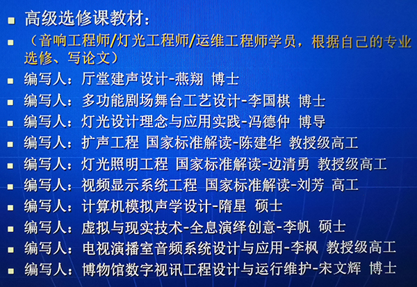 7、选修课:扩声系统、视频系统设计规范国家标准解读。