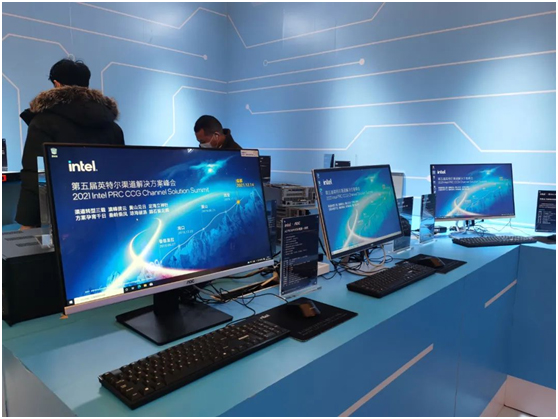 此次峰会还展示了AOC电脑一体机的众多应用解决方案。如以A2483A8移动定制款打造的智慧呼叫中心解决方案;以A24923NH46、A24838NH56打造的智慧房产中介解决方案;使用A24734MH2G、A27926MH2G搭建的英特尔11代H45高性能方案等。