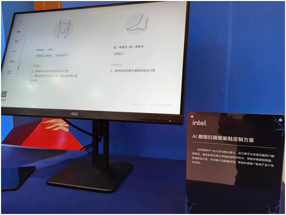 Q27P2C商用显示器现场还应用于AI脚步扫描智能鞋定制方案中,高清展示扫描脚步的各类数据,以直观、高清、细腻的画面呈现,便于消费者建立清晰认知。