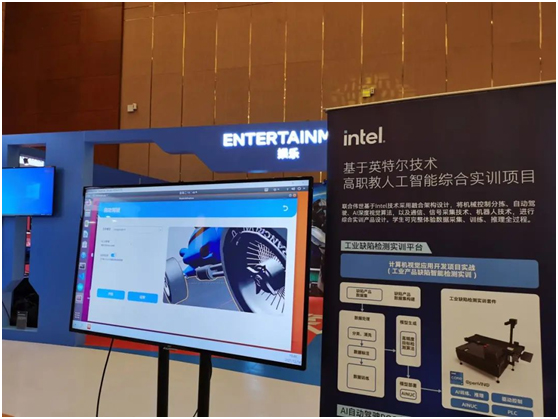 针对人工智能教育,基于英特尔技术高职教人工智能综合实训平台,有助于将机械控制分拣、自动驾驶、AI深度视觉算法,以及通信、信号采集技术、机器人技术等,进行综合实训产品设计,学生可完整体验数据采集、训练、推理全过程。
