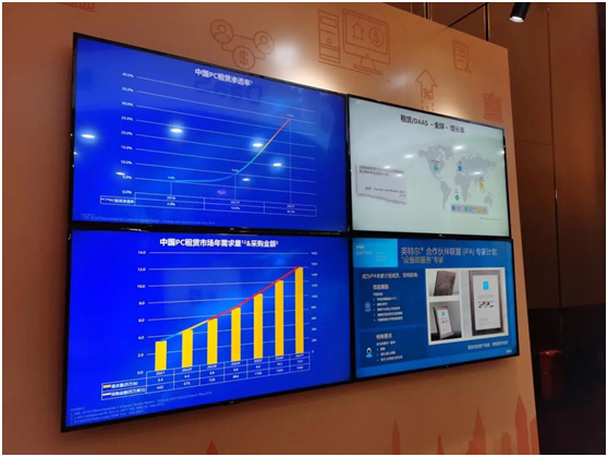 在此次峰会所展示的全行业IT设备租赁及管理方案中,通过AOC 55X3数字标牌壁挂拼接,搭载CMS信发系统可进行宣传视频、滚播海报、画面云拼接、动态模板等内容制作,并以出众的色彩表现力实时呈现商务信息,并以高品质、高稳定性等特点,为管理方案提供更强大的保障,亦充分迎合行业人群需求,开启商用租赁新时代!