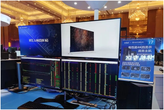 除此之外,现场还基于AOC全屏视讯产品,搭载英特尔28核4.5G高频交易服务器、迷你PC Model Z创客、双网隔离安全一体机等,进而打造工业制造、金融交易、网络安全等细分场景解决方案,精准化满足行业客户需求!