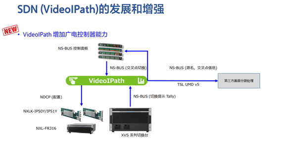索尼通过收购Nevion公司,加强基于IP/云的解决方案的提供能力。IP网络管理不仅仅停留于信号的调配,要深入到制作域把各种资源进行虚拟化管理。索尼新发布SDN广电控制器,通过Nevion的SDN控制系统VideoIPath,整合索尼自有成熟的LSM广电IP Live管理系统,从设备到整个信号调度,一直深入到交换机、网络构架的统一管控,帮助电视台实现端到端全IP 2.0工作流程,让远程制作不再“远”。