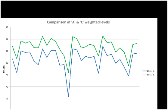现在您必须首先考虑一个问题:确定的PA系统语音水平是多少?它是83dBA或83dB LAeq。C加权不适用于测量语音水平,它产生的数值通常比A加权的值高5dB。如果没有具有LAeq功能的声级计,则仔细对dBA“慢”读数进行平均计算可以提供合理准确的答案——在这种情况下,是84dBA,而不是正确答案83dBA。