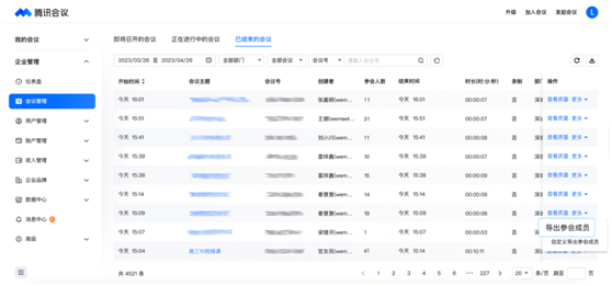 下课后老师可登陆腾讯会议官网,一键导出参会成员列表,掌握学员的课程参与情况。