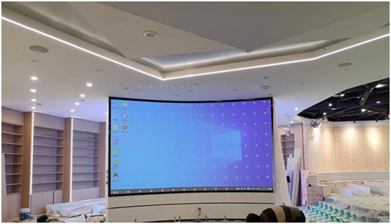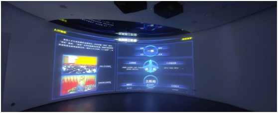 案例说明:使用9台BC9K液晶激光投影机,通过拼接融合的方式,打造巨幅弧形画面,让展厅更显沉浸感。