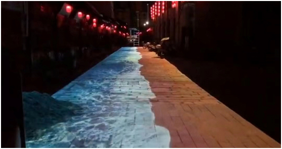 案例说明:使用多台Monalisa系列液晶激光投影机,通过拼接融合方式,将图案或者动态效果投射在地面或者建筑墙体上,Monalisa系列投影机的高亮度和高分辨率,带来亮丽生动的大画面,让游客仿佛漫步海边沙滩,或者游走在山林之间,感受不一样的浪漫和惊喜。