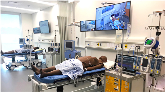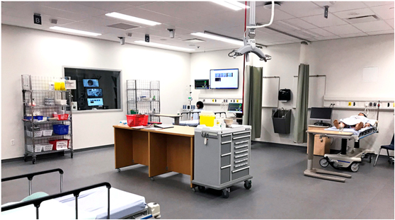 此类实验室可模拟从医院和医疗实验室设置,到急诊响应和分诊等不同情境。现场提供诊疗室、技术增强型病床、带 AV 连接的急救车、护理呼叫系统、药房系统和用于危机处理培训的模拟伤害模型。每间实验室都关联一间控制室,并包含八个病床工作站。控制室单个工作站可管理两张病床,允许不同情境同时运行。