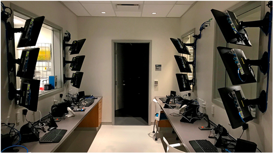 NAV 系统成功将主动学习/教学空间、实验室及各类模拟器连接在一起,从而能灵活将任一信号源路由至任一显示器。NAV 编码器可分别对接病床工作站的 PTZ 和半球型摄像机,以及病床和教师工作站计算机以及墙面板的 HDMI 连接。这里共有超过 230 台 NAV 编码器通过 IP 网络传输高品质、极低延迟的视频和 AES67 音频,还有超过 170 台 NAV 图像解析度转换解码器负责接收来自各编码器的信号,为中心内各工作站的大屏显示器和桌面显示器提供像素级完美的图像品质。