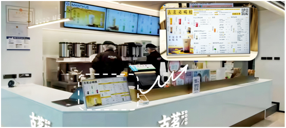 通过数字标牌、电子餐牌等硬件及CMS信发系统打造软硬件一体化新茶饮门店解决方案。该方案可提供吸睛引流信息展示、自助点餐/叫号、门店统一化管控调度等一站式应用服务,甚至还可适配对接收银系统,使餐牌菜单实时显示销量热度及售罄通知等信息,从而打造数字化、创新化、个性化茶饮门店。