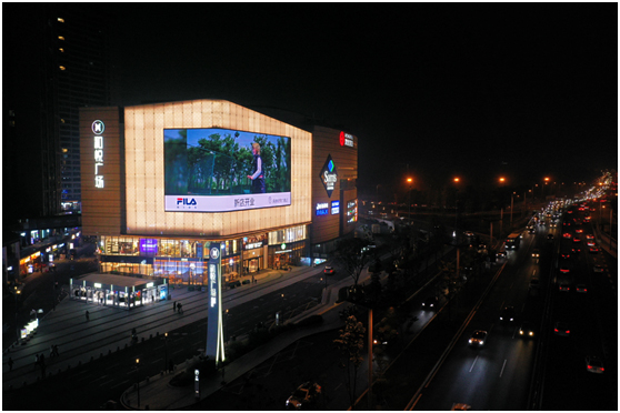 和悦广场正门入口处的拐角大屏,作为视觉焦点的同时起着广告宣传醒目的作用。走到商场门口抬头仰望,便可看到联建光电专业团队打造的裸眼3D视频内容,一个礼品盒送到你面前,欢迎前往和悦广场,由此带给消费者高互动性的商业场景新体验。夜幕降临,大屏与灯带交相辉映,共同打造城市夜景风景线。